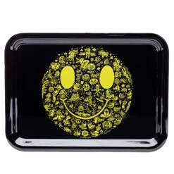The Miles of Smiles illustration is packed full of little surprises for you to hunt down. The classic smiley face is elevated in this artwork featuring nearly a hundred individual characters and drawings that form together to make the big smile. The dark black tray makes finding bits of green easy while rolling. We love these exclusive illustrations from artist Rob Corradetti a.ka. Killer Acid. Follow him on Instagram @killeracid.