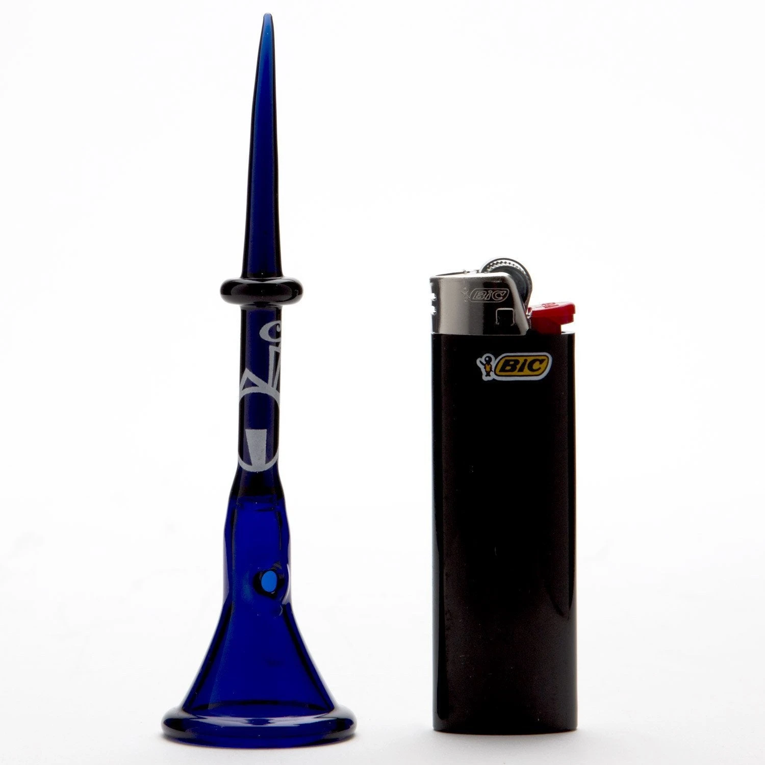 - Blue glass body