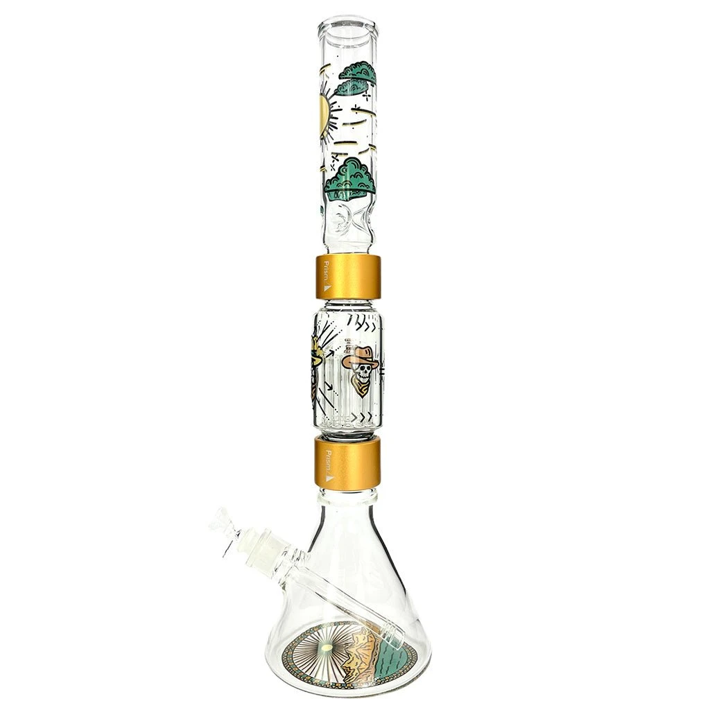 The Halo Desert Dream’n Beaker Double Stack is Prism’s version of the classic beaker bong with a perc, and let’s face it, it’s beautiful. With our custom bong system, it’s easy to break it down for ease of cleaning, part replacement, switching it up, and throwing in a backpack for an adventure.