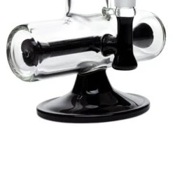 This massive dual perc pipe is the biggest, most badass one we sell and it will devastate you and your whole squad. The six-inch inline perc in the massive bottom chamber evenly spreads and initially percolates a full bowls worth of smoke before sending it to the ten-armed multi-slit tree perc. The splash guard mounted to the bottom of the mouthpiece ensures that you can pull as hard as you want with no worries.
